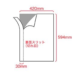 ※用紙の長い辺の紙端から、30mm程度の位置に裏スリットが1本入ります